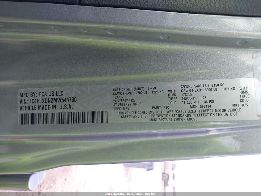 2021 JEEP WRANGLER | 1C4HJXDN2MW544730