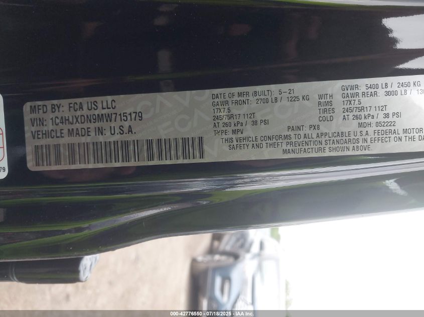 2021 JEEP WRANGLER | 1C4HJXDN9MW715179