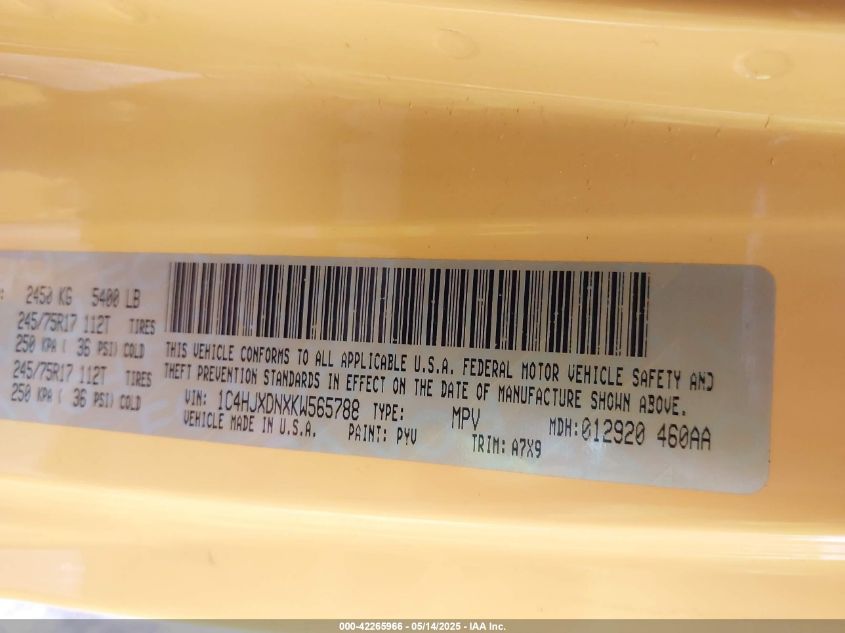 2019 JEEP WRANGLER | 1C4HJXDNXKW565788