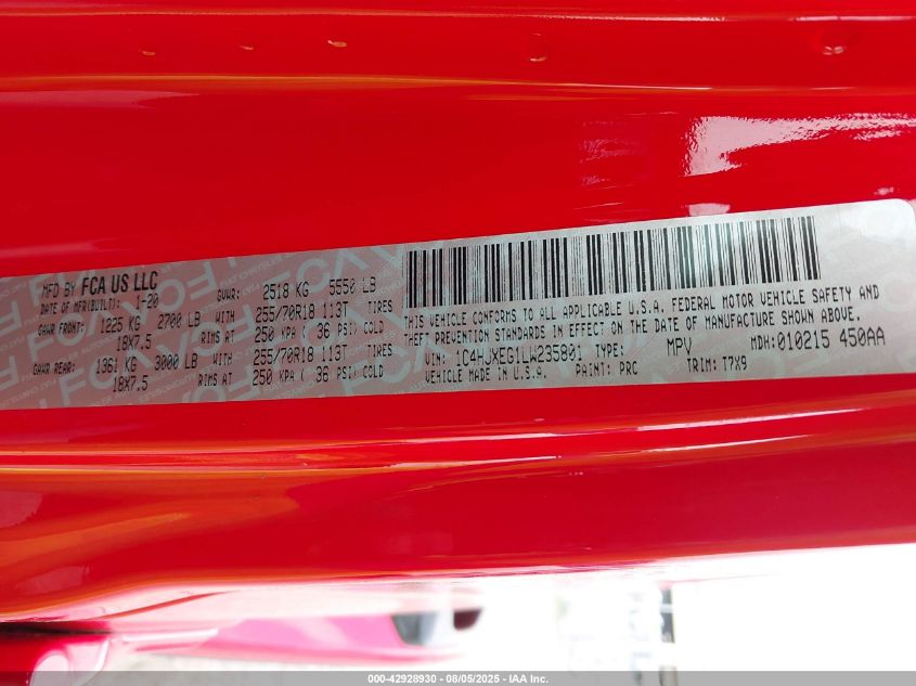 2020 JEEP WRANGLER | 1C4HJXEG1LW235801