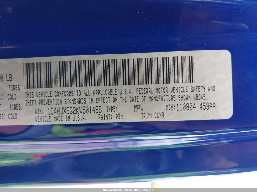 2019 JEEP WRANGLER | 1C4HJXEG2KW501485