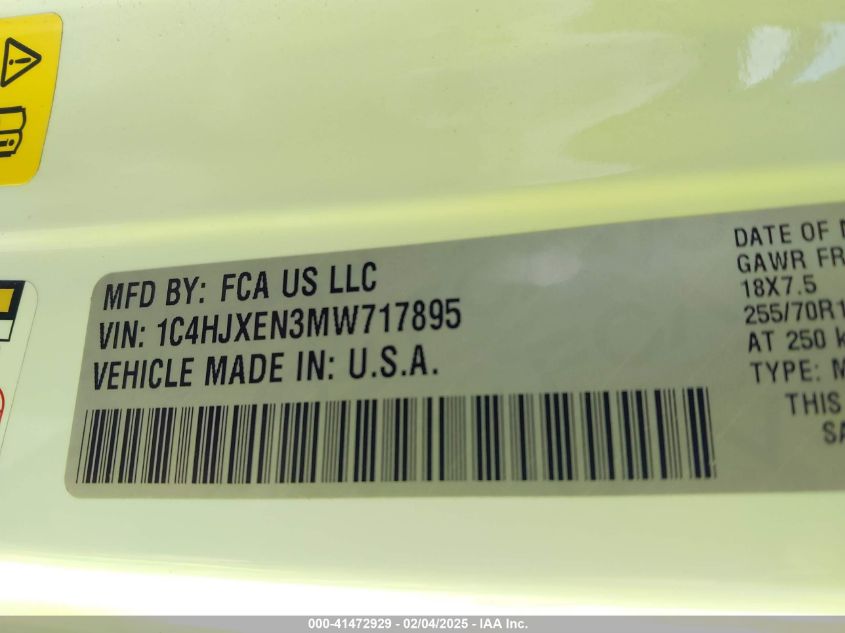 2021 JEEP WRANGLER | 1C4HJXEN3MW717895