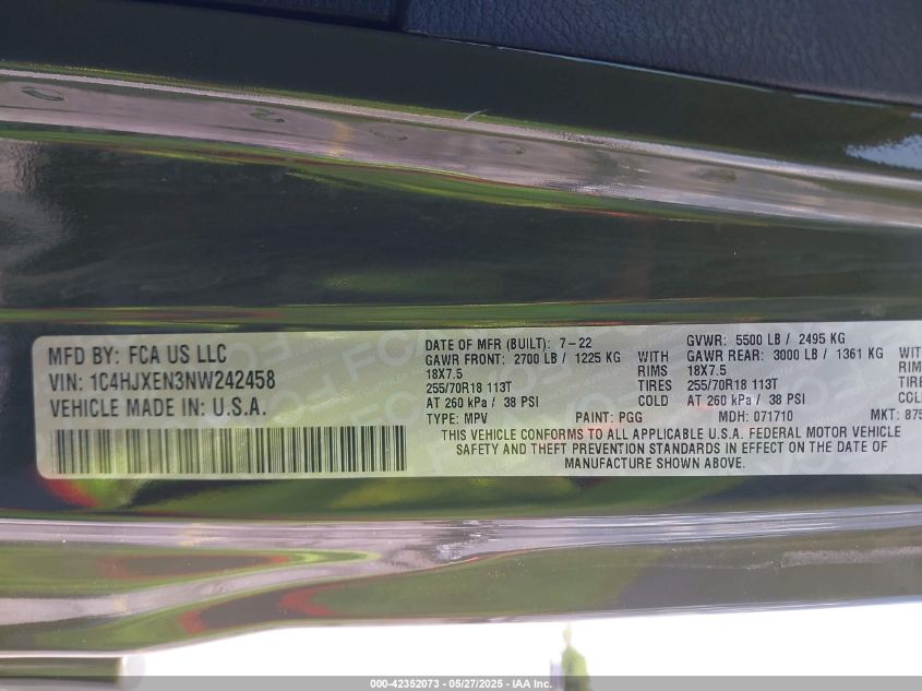 2022 JEEP WRANGLER | 1C4HJXEN3NW242458