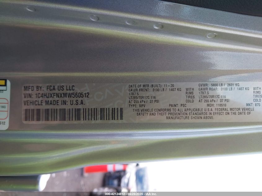 2021 JEEP WRANGLER | 1C4HJXFNXMW560512