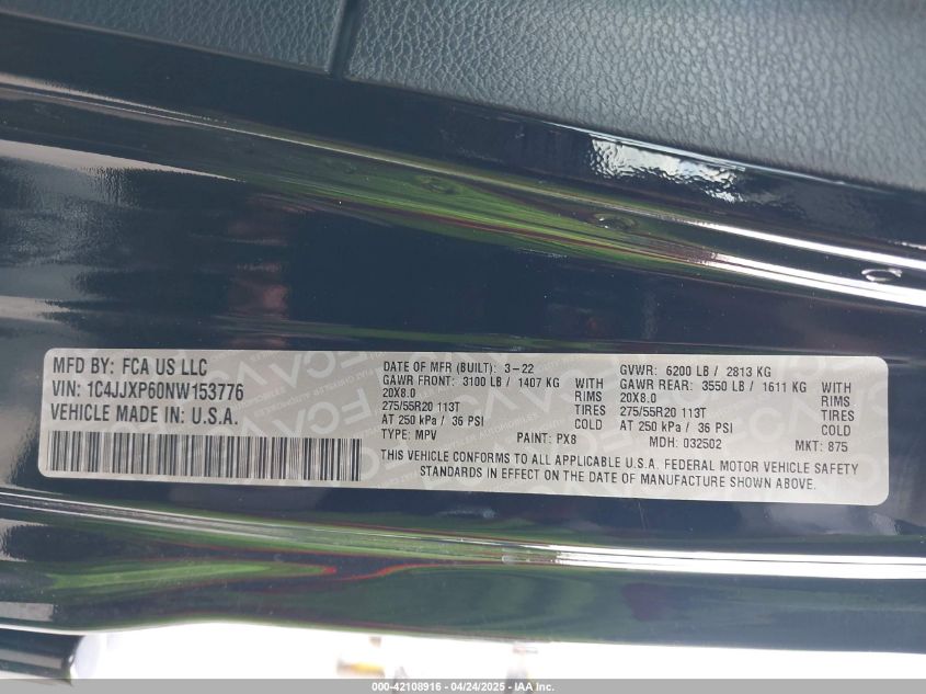 2022 JEEP WRANGLER | 1C4JJXP60NW153776