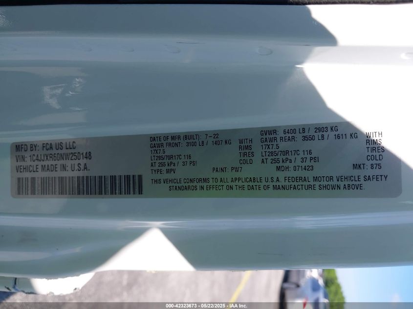2022 JEEP WRANGLER | 1C4JJXR60NW250148