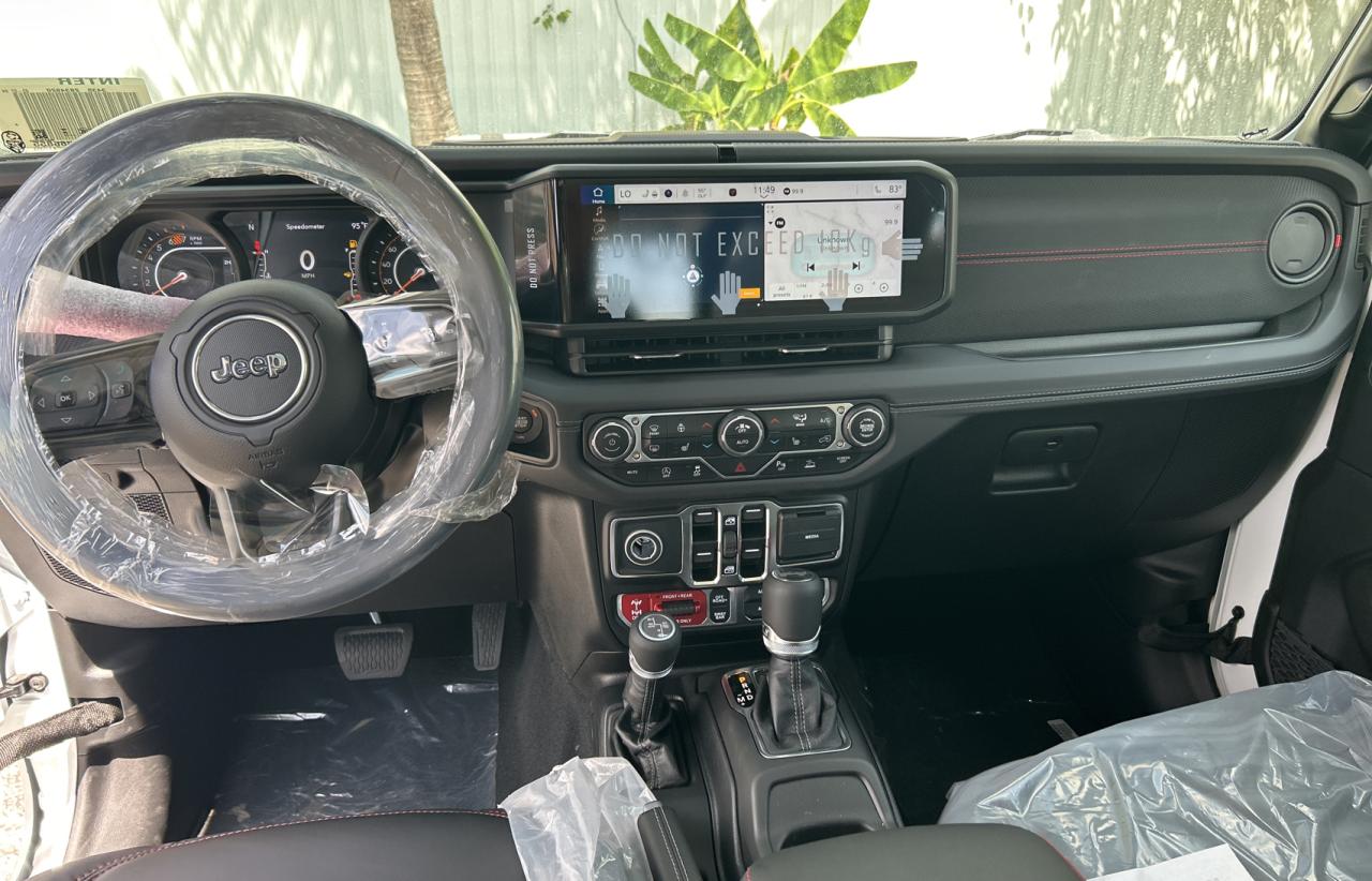 Inside, the Wrangler’s cabin evolved dramatically across generations. The JK featured functional, rugged materials with utilitarian finishes. The JL introduced soft-touch surfaces, stitched leather, 7- or 8.4-inch touchscreens with Uconnect, and Alpine premium audio. Color schemes range from black and tan to red-accented interiors in Rubicon models and blue-stitched leather in 4xe trims. High trims offer heated leather seats, ambient lighting, and integrated off-road pages and trail cameras.