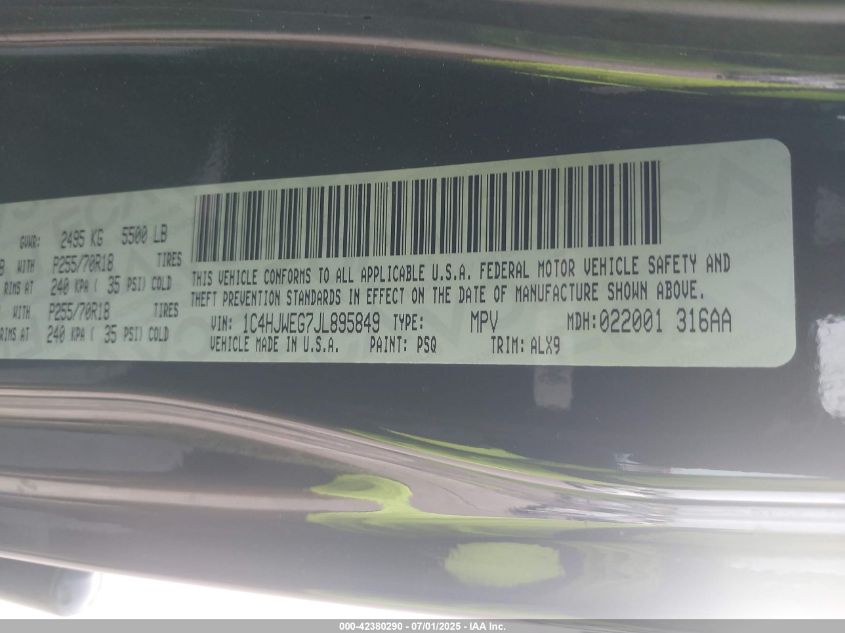 2018 JEEP WRANGLER JK | 1C4HJWEG7JL895849