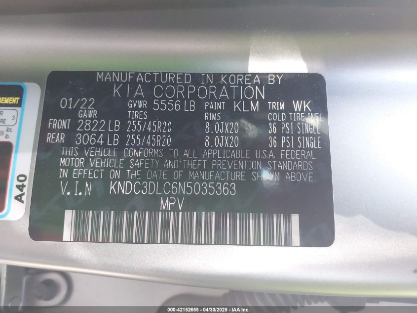2022 KIA EV6 | KNDC3DLC6N5035363