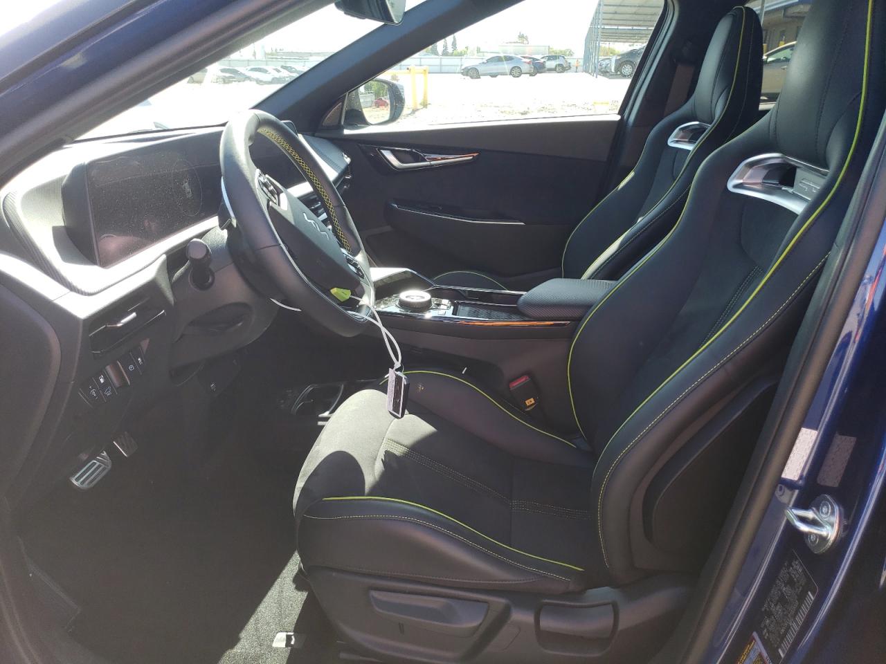 Inside, the EV6 GT features bucket-style sports seats, green GT stitching, and a GT Mode button on the steering wheel that unleashes the car’s full torque profile. It includes all flagship tech: dual 12.3” curved displays, augmented-reality HUD, and full ADAS suite.