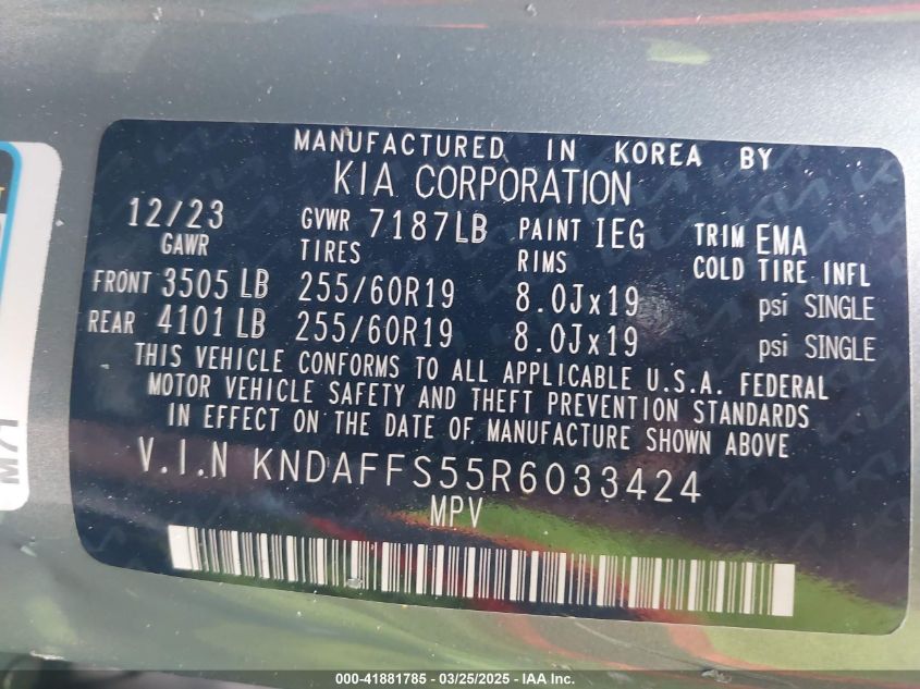 2024 KIA EV9 | KNDAFFS55R6033424