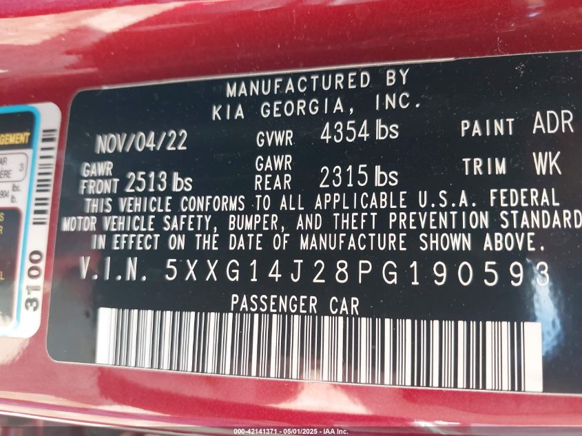 2023 KIA K5 | 5XXG14J28PG190593