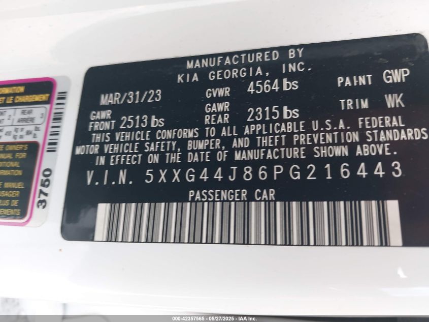 2023 KIA K5 | 5XXG44J86PG216443