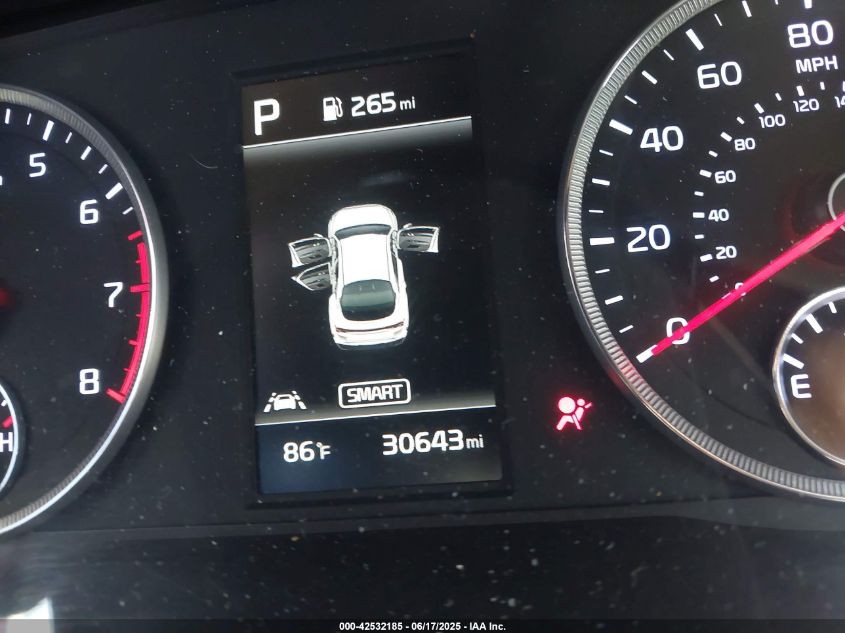 The Kia K5 is a four-door midsize fastback sedan with a bold and athletic profile. It features a sloping roofline, wide front fascia, and sculpted body panels that give it a near-coupe appearance without compromising practicality. The “tiger face” grille seamlessly integrates with the daytime running lights, which stretch deep into the front fenders like lightning bolts. A strong shoulder line, flared rear fenders, and a full-width LED light bar at the rear emphasize its wide stance. Dual exhaust outlets and black exterior trim in GT models further enhance the performance aesthetic. Despite its aggressive styling, rear headroom and trunk space remain generous due to clever packaging.