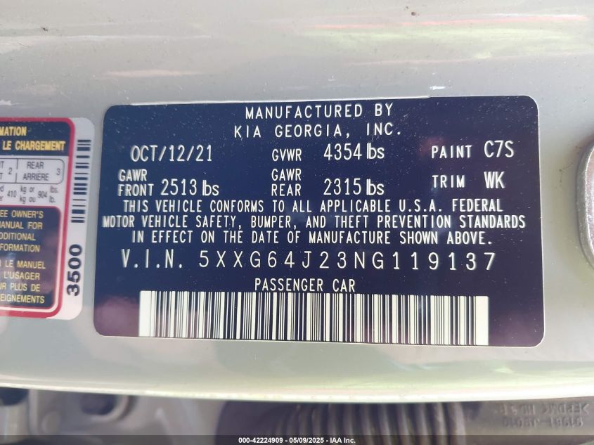 2022 KIA K5 | 5XXG64J23NG119137