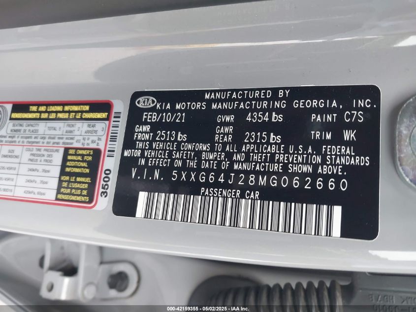 2021 KIA K5 | 5XXG64J28MG062660