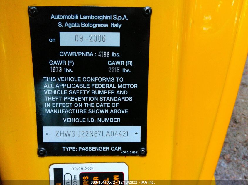 2007 LAMBORGHINI GALLARDO | ZHWGU22N67LA04421