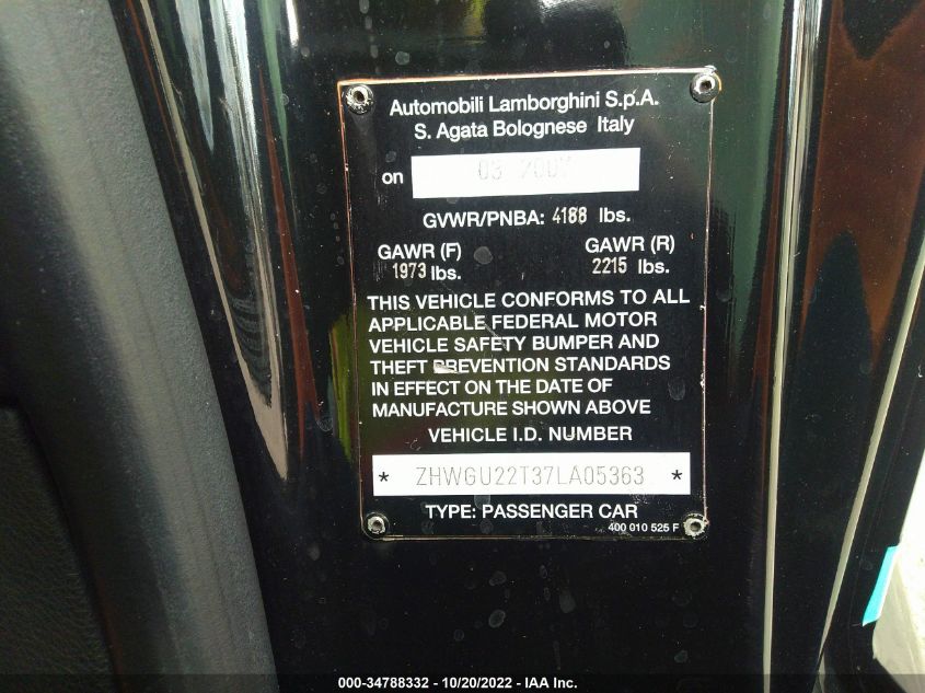 2007 LAMBORGHINI GALLARDO | ZHWGU22T37LA05363