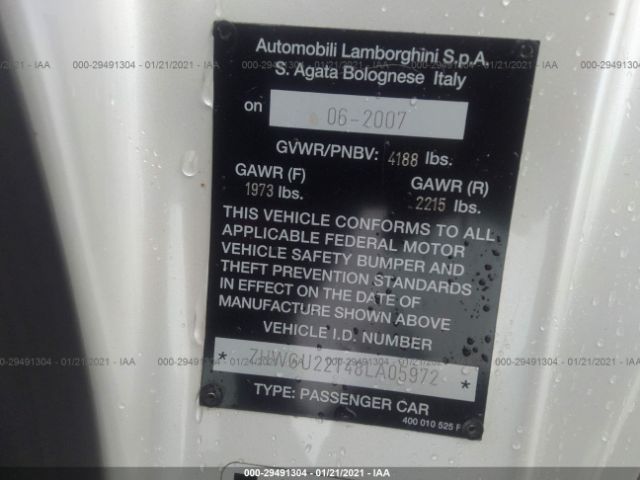 2008 LAMBORGHINI GALLARDO | ZHWGU22T48LA05972