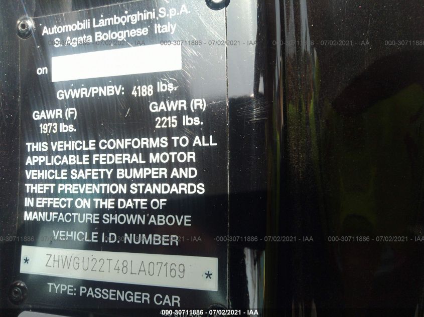2008 LAMBORGHINI GALLARDO | ZHWGU22T48LA07169