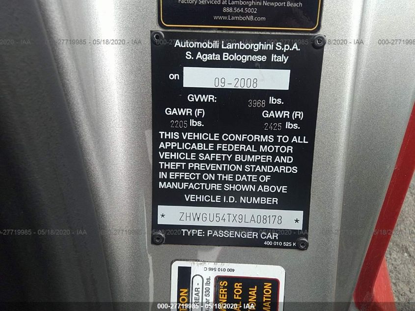 2009 LAMBORGHINI GALLARDO | ZHWGU54TX9LA08178