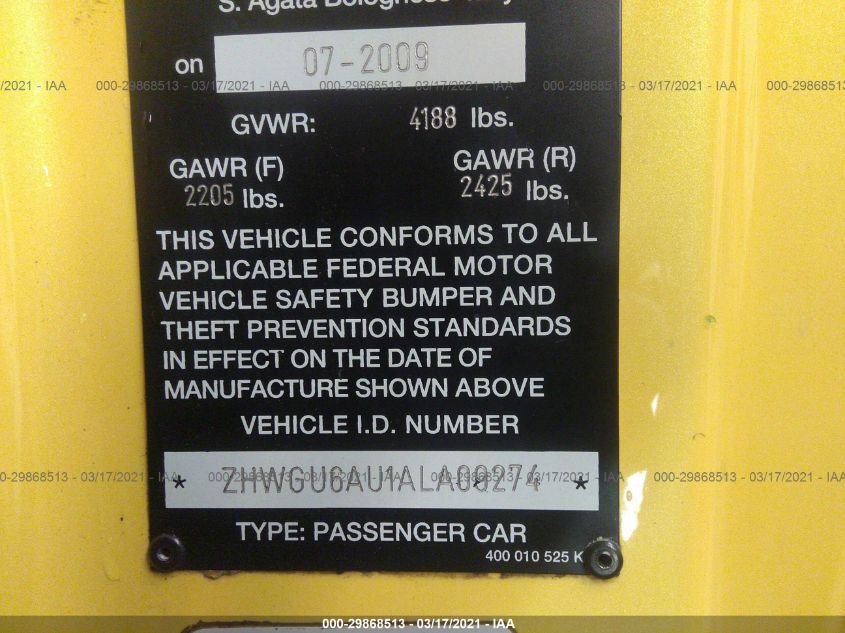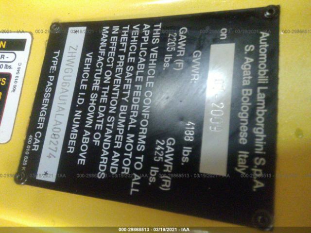 2010 LAMBORGHINI GALLARDO | ZHWGU6AU1ALA09274