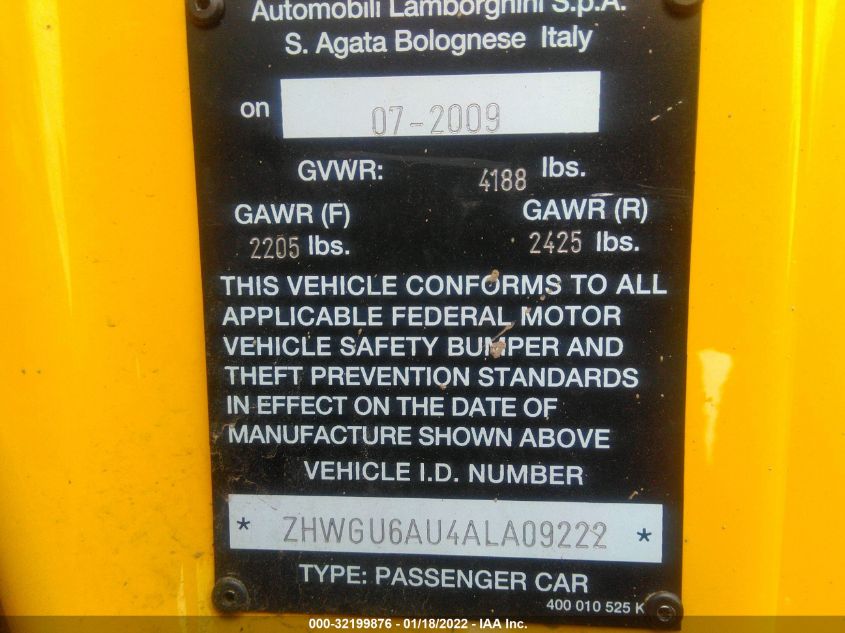 2010 LAMBORGHINI GALLARDO | ZHWGU6AU4ALA09222