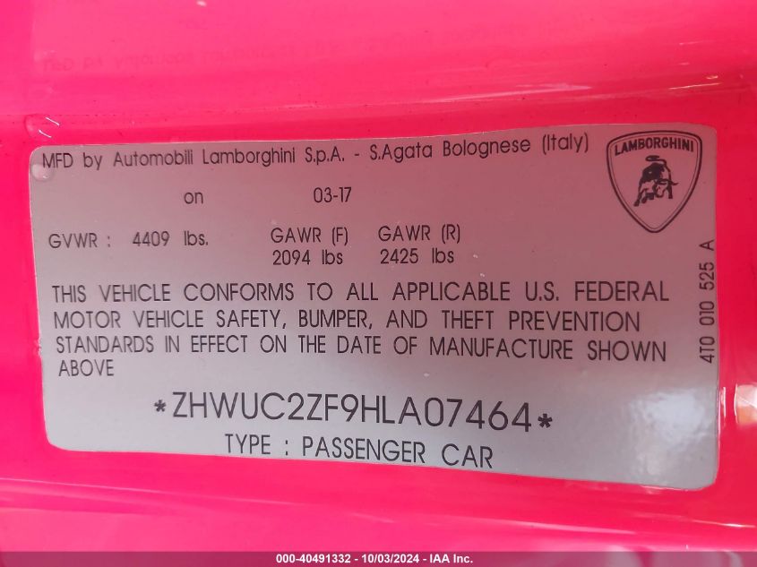 2017 LAMBORGHINI HURACAN | ZHWUC2ZF9HLA07464
