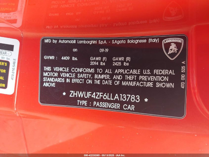 2020 LAMBORGHINI HURACAN | ZHWUF4ZF6LLA13783