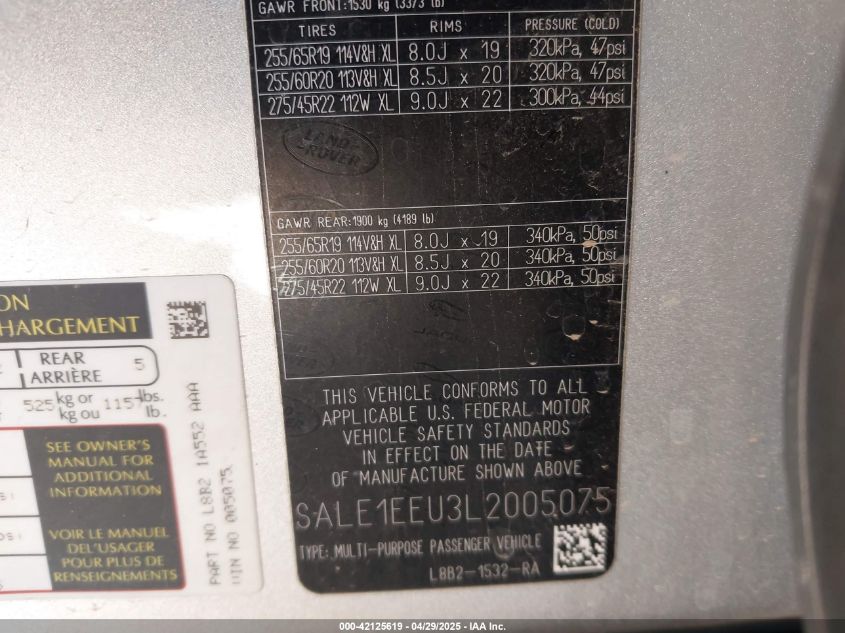 2020 LAND ROVER DEFENDER | SALE1EEU3L2005075