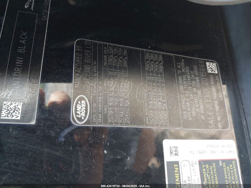 2020 LAND ROVER DEFENDER | SALEJEEX0L2015668