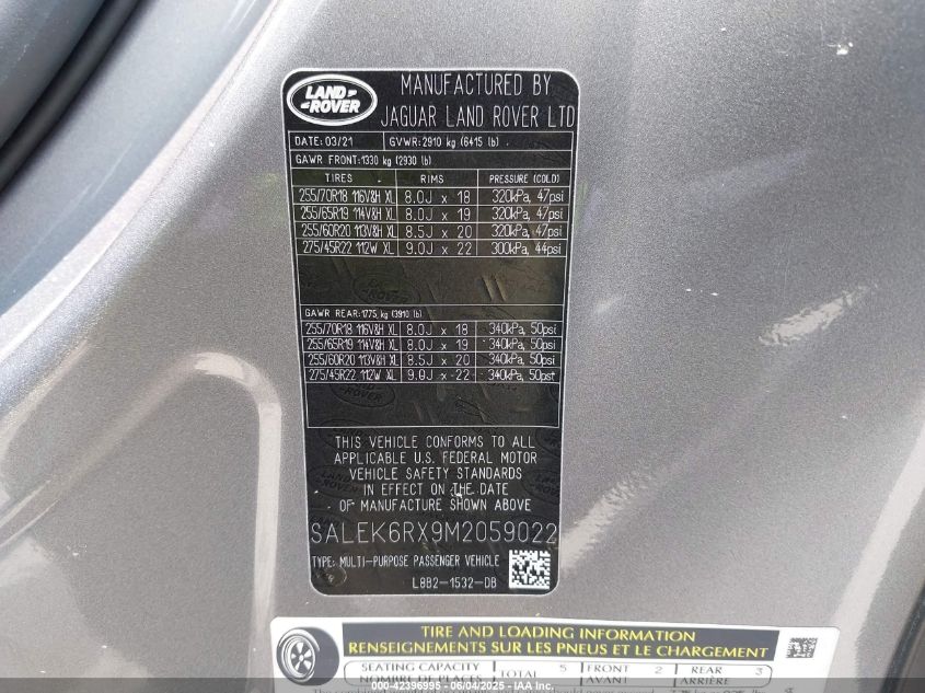 2021 LAND ROVER DEFENDER | SALEK6RX9M2059022