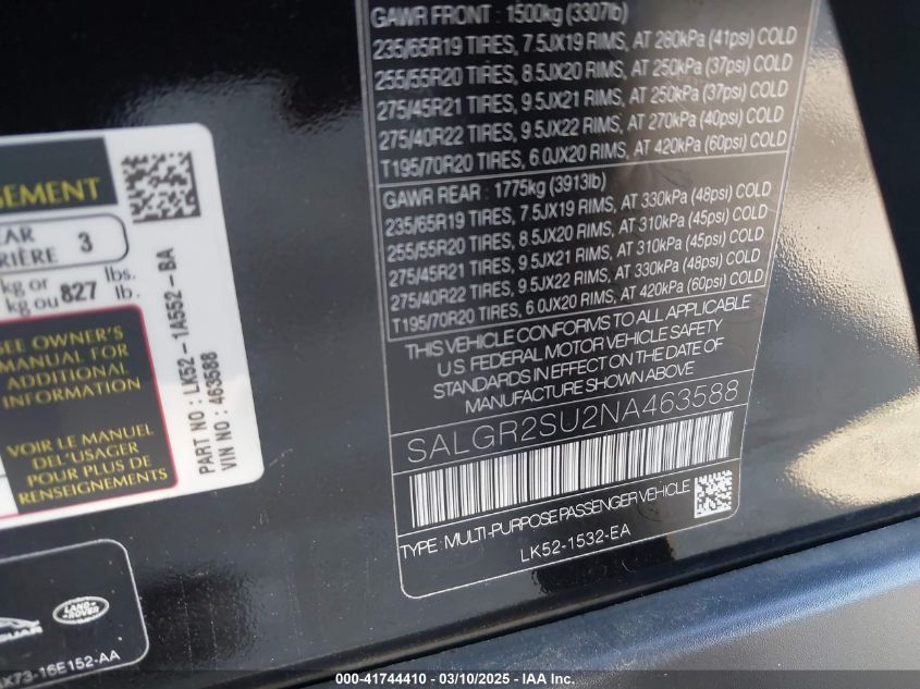 2022 LAND ROVER RANGE ROVER | SALGR2SU2NA463588