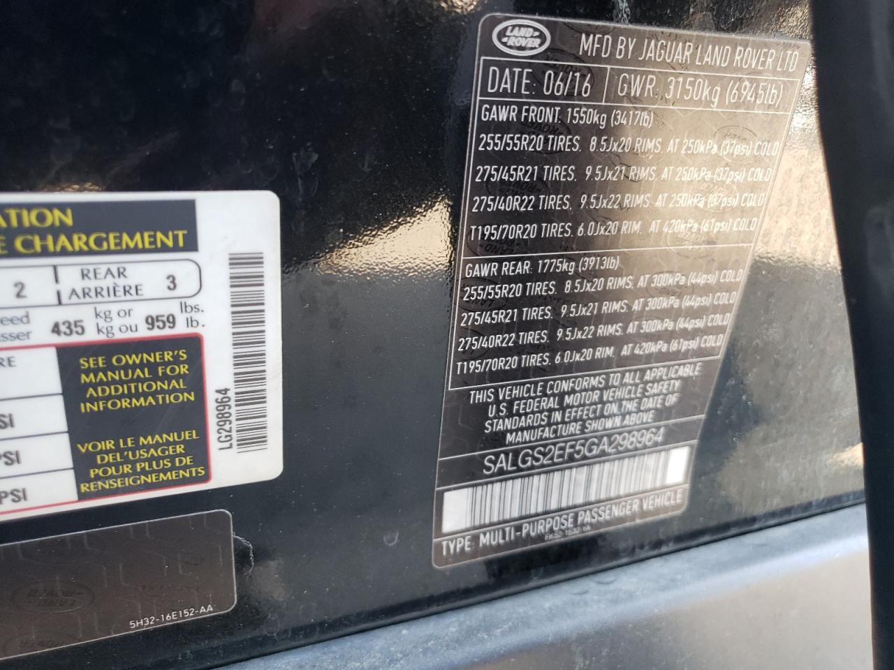 2016 LAND ROVER RANGE ROVER | SALGS2EF5GA298964