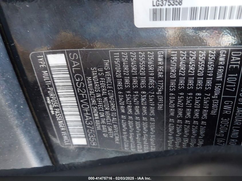 2017 LAND ROVER RANGE ROVER | SALGS2FV0HA375358