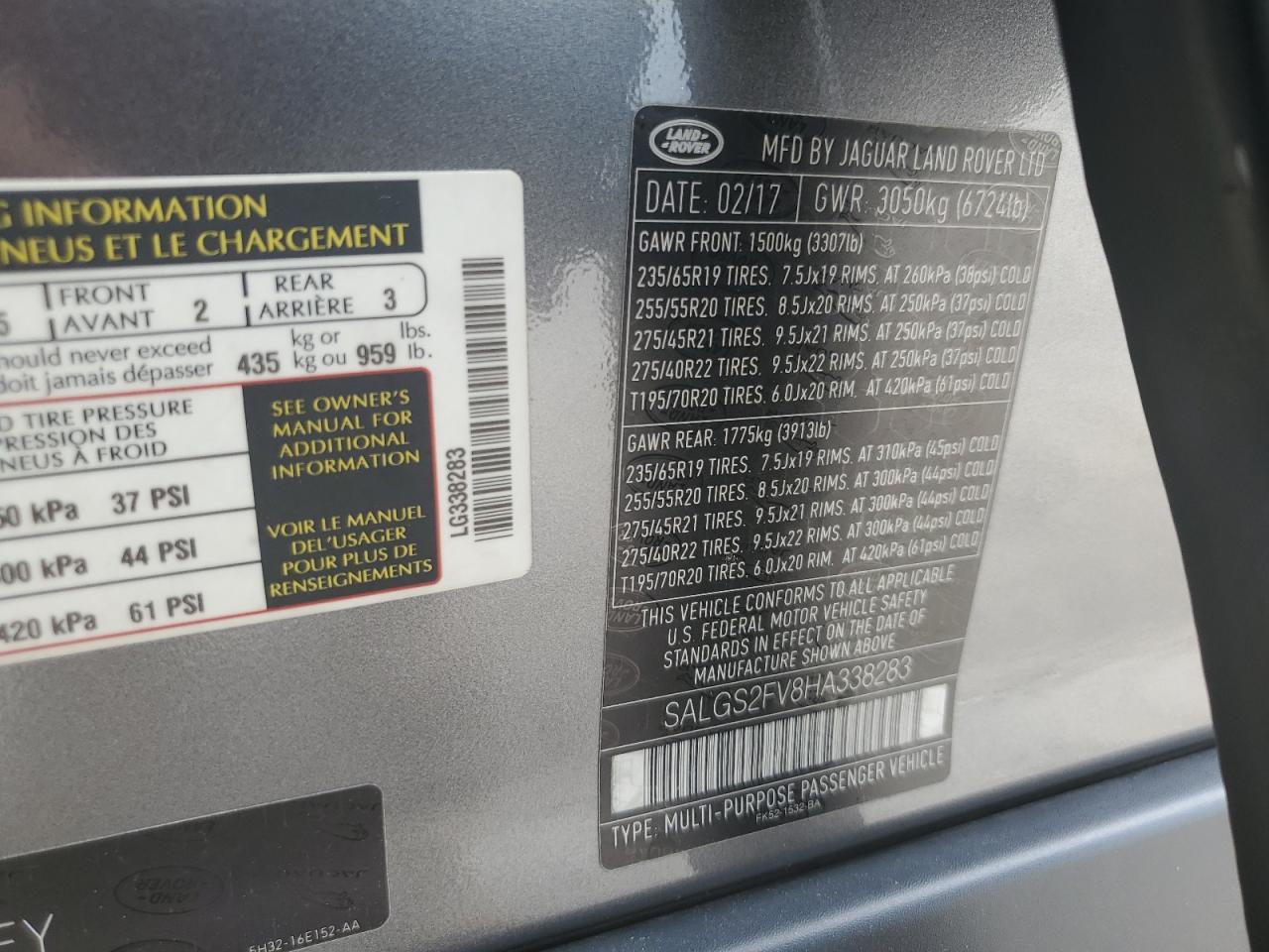 2017 LAND ROVER RANGE ROVER | SALGS2FV8HA338283