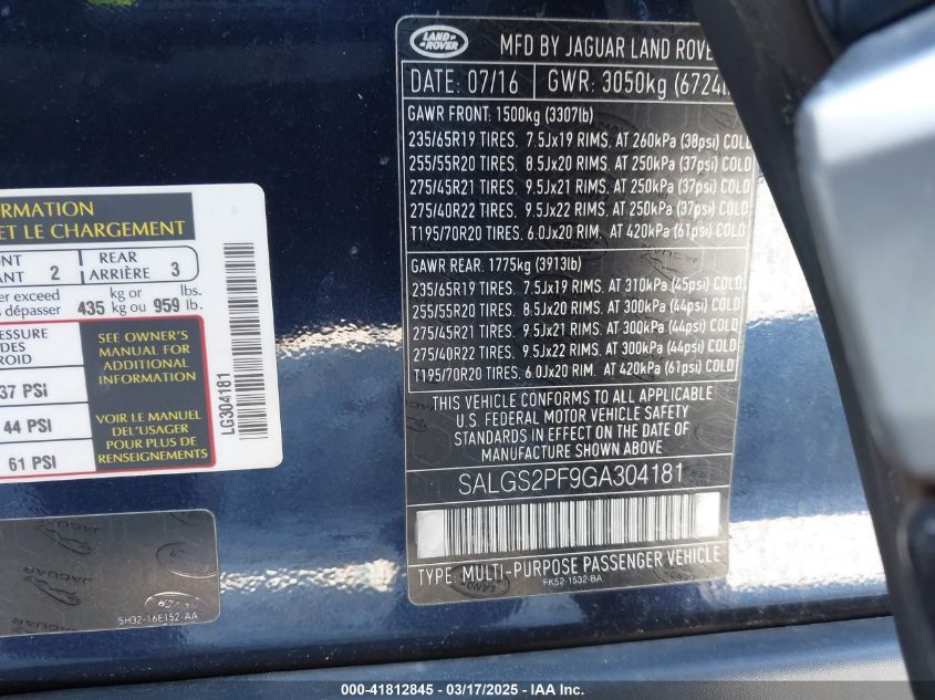 2016 LAND ROVER RANGE ROVER | SALGS2PF9GA304181