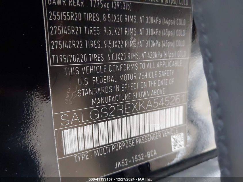 2019 LAND ROVER RANGE ROVER | SALGS2REXKA545261