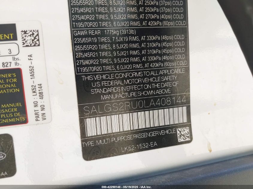 2020 LAND ROVER RANGE ROVER | SALGS2RU0LA408144