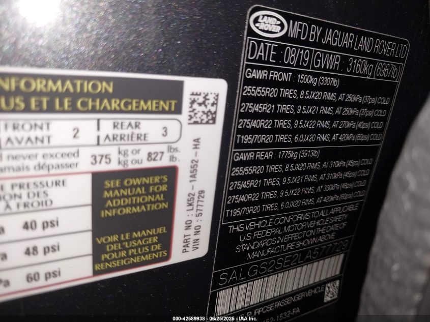 2020 LAND ROVER RANGE ROVER | SALGS2SE2LA577729
