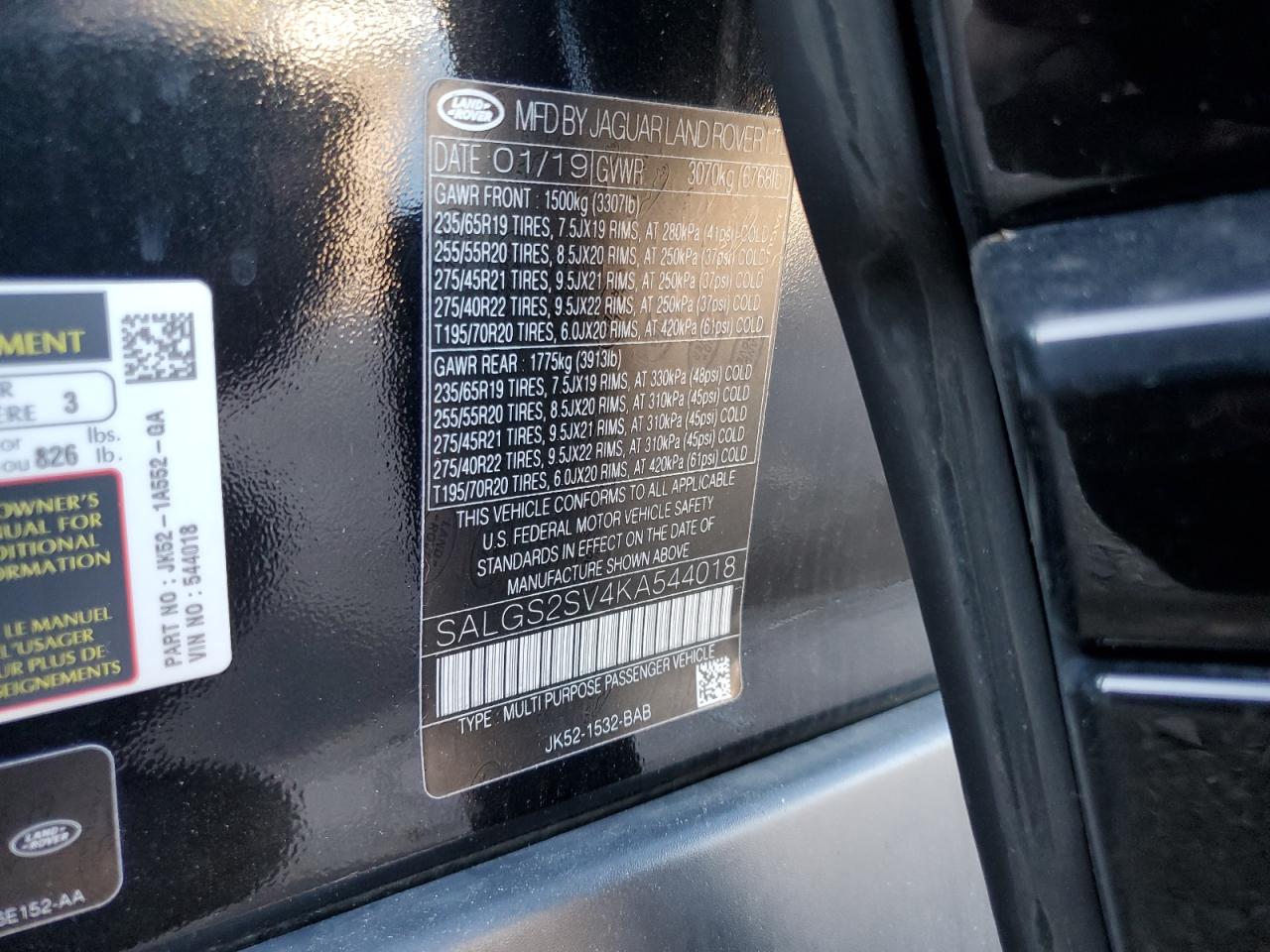 2019 LAND ROVER RANGE ROVER | SALGS2SV4KA544018