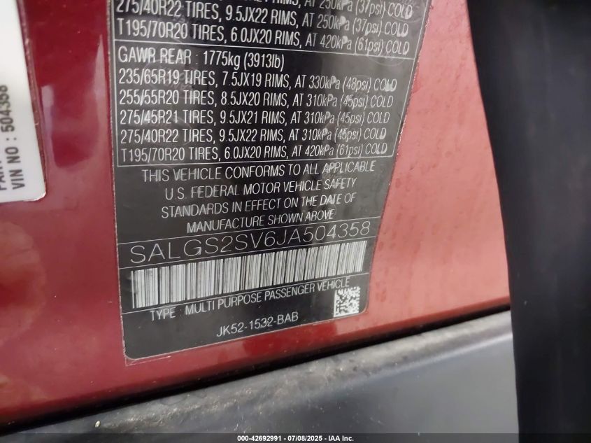 2018 LAND ROVER RANGE ROVER | SALGS2SV6JA504358