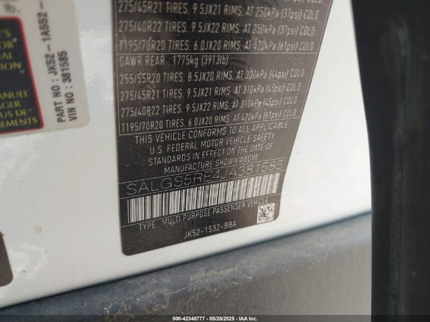 2018 LAND ROVER RANGE ROVER | SALGS5RE4JA381585