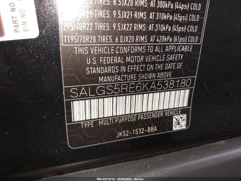 2019 LAND ROVER RANGE ROVER | SALGS5RE6KA538180