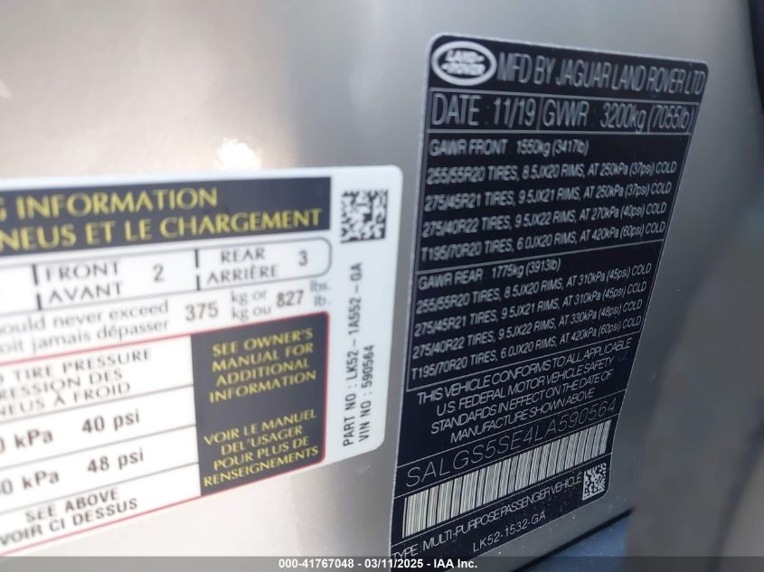 2020 LAND ROVER RANGE ROVER | SALGS5SE4LA590564