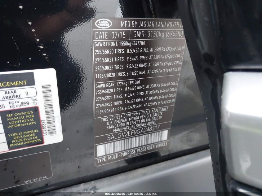 2016 LAND ROVER RANGE ROVER | SALGV2EF9GA248317