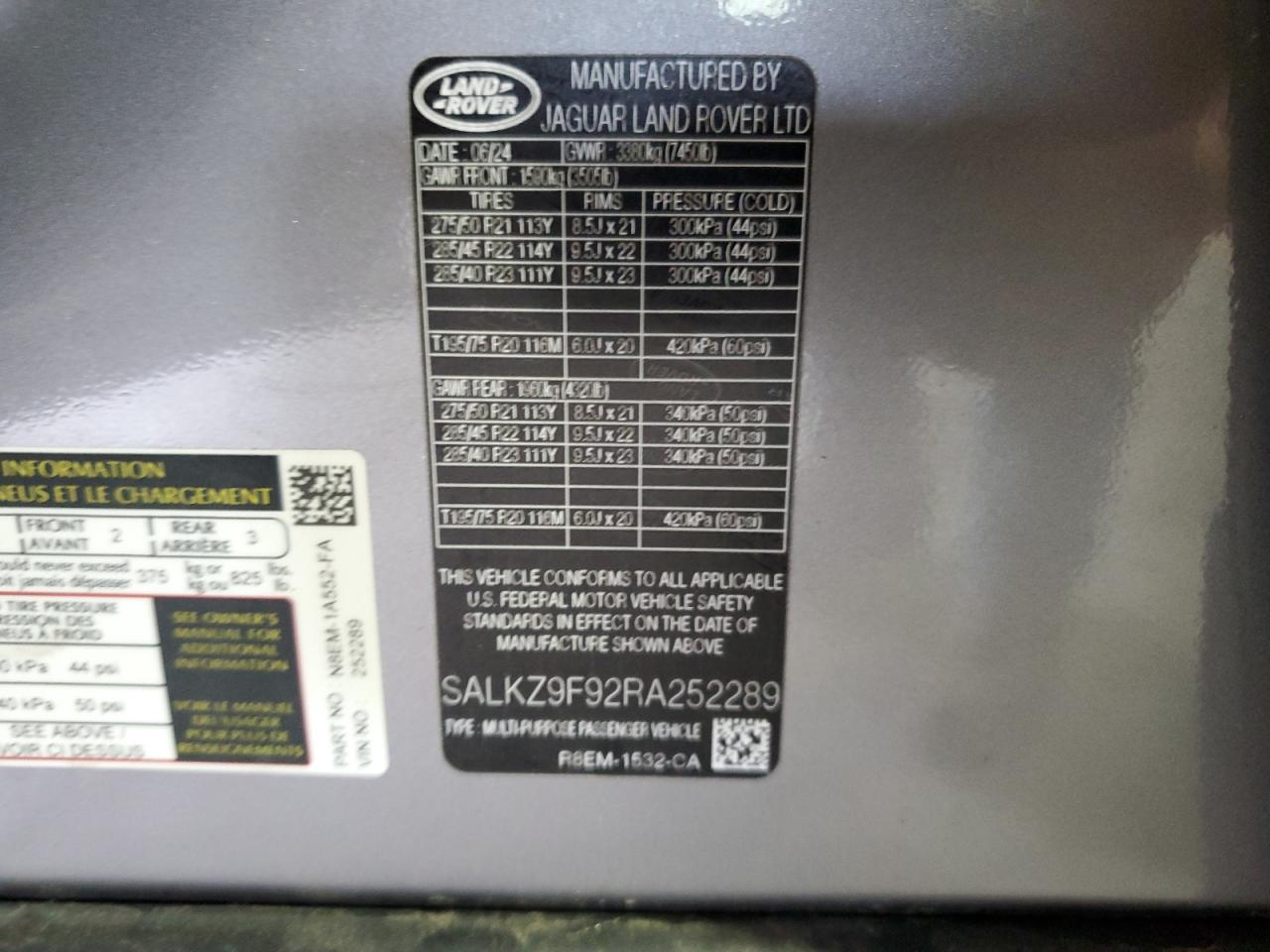 2024 LAND ROVER RANGE ROVER | SALKZ9F92RA252289