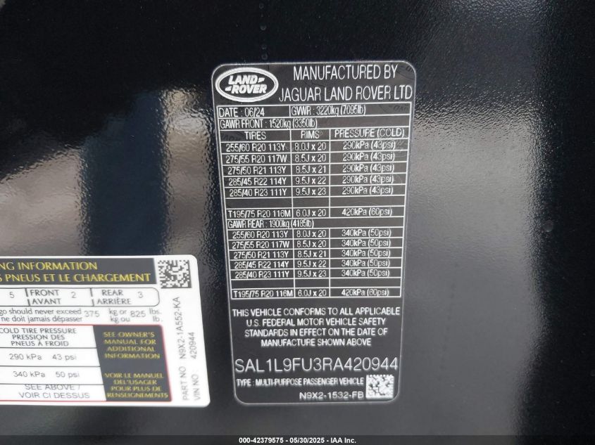 2024 LAND ROVER RANGE ROVER SPORT | SAL1L9FU3RA420944