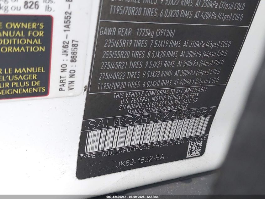 2019 LAND ROVER RANGE ROVER SPORT | SALWG2RU6KA866587