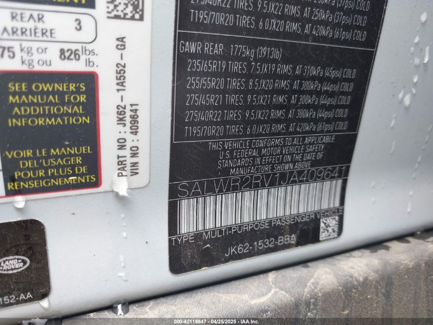 2018 LAND ROVER RANGE ROVER SPORT | SALWR2RV1JA409641